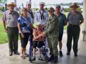 Museum technician Fox said the Darrows’ story of love and resilience in the aftermath of Dec. 7 is representative of the powerful transformation depicted in the Tree of Life monument at the Arizona Memorial Visitors Center. The Tree of Life design is also featured on both side walls in the USS Arizona Memorial’s shrine room, allowing natural lighting to illuminate the names of fallen service members.